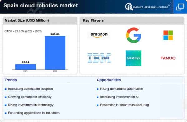 Investment in research and development (R&D) plays a crucial role in the growth of the cloud robotics market in Spain. Companies and research institutions are increasingly allocating resources to develop advanced robotic technologies and cloud-based solutions. This focus on R&D is essential for fostering innovation and enhancing the capabilities of robotic systems. In recent years, Spain has seen a rise in public and private funding for robotics initiatives, with R&D expenditures reaching approximately €1.2 billion in 2025. This investment is likely to yield breakthroughs in artificial intelligence, machine learning, and robotics, further driving the cloud robotics market. As new technologies emerge, they will enable more sophisticated applications, thereby attracting a wider range of industries to adopt cloud robotics solutions.