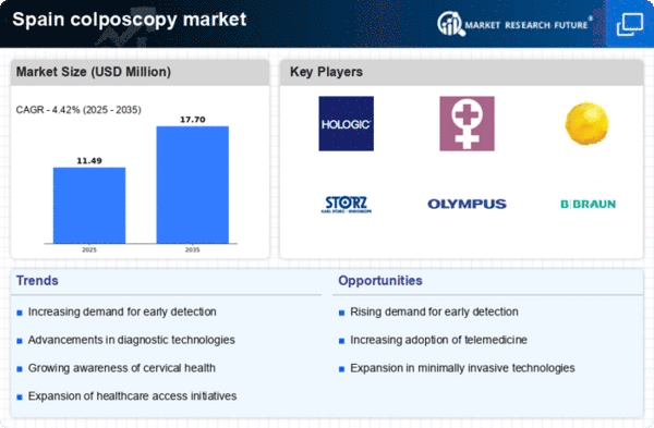 Government initiatives aimed at improving women's health in Spain are playing a vital role in the growth of the colposcopy market. The Spanish government has implemented various programs to promote cervical cancer screening and prevention. These initiatives often include subsidized screening services and public awareness campaigns that encourage women to participate in regular health check-ups. As a result, the colposcopy market is likely to experience increased demand due to the proactive measures taken by the government. Furthermore, collaboration between public health organizations and private healthcare providers may enhance access to colposcopy services, thereby expanding the market. The commitment of the Spanish government to prioritize women's health is expected to have a lasting impact on the colposcopy market, fostering a culture of preventive care.