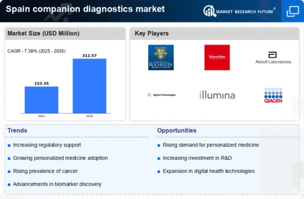 The increasing incidence of cancer in Spain is a primary driver of the companion diagnostics-oncology market. According to recent statistics, cancer cases are projected to rise by approximately 20% over the next decade. This surge necessitates the development of targeted therapies, which rely heavily on companion diagnostics to identify suitable patients for specific treatments. The companion diagnostics-oncology market is positioned to expand as healthcare providers seek to improve patient outcomes through personalized treatment plans. Furthermore, the Spanish healthcare system is increasingly adopting precision medicine approaches, which further fuels the demand for companion diagnostics. As the population ages and lifestyle factors contribute to higher cancer rates, the need for effective diagnostic tools becomes more pressing, indicating a robust growth trajectory for the companion diagnostics-oncology market in Spain.