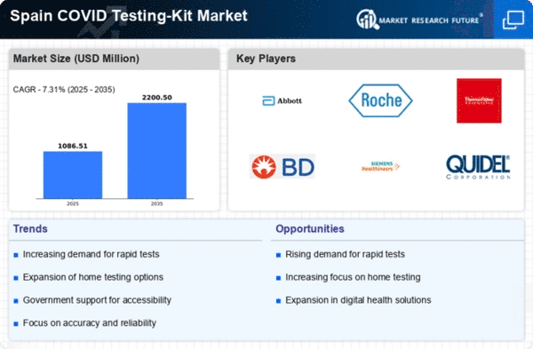 The covid testing-kit market in Spain is seeing opportunities for exporting testing kits to other countries. As Spanish manufacturers enhance their production capabilities and ensure compliance with international standards, they are well-positioned to enter foreign markets. Recent data suggests that exports of testing kits from Spain have increased by 15% in the last year, indicating a growing reputation for quality and reliability. This trend not only benefits local manufacturers but also contributes to the overall growth of the covid testing-kit market. By tapping into international demand, Spanish companies can diversify their revenue streams and strengthen their market presence. The potential for exporting testing kits represents a promising avenue for growth within the covid testing-kit market.