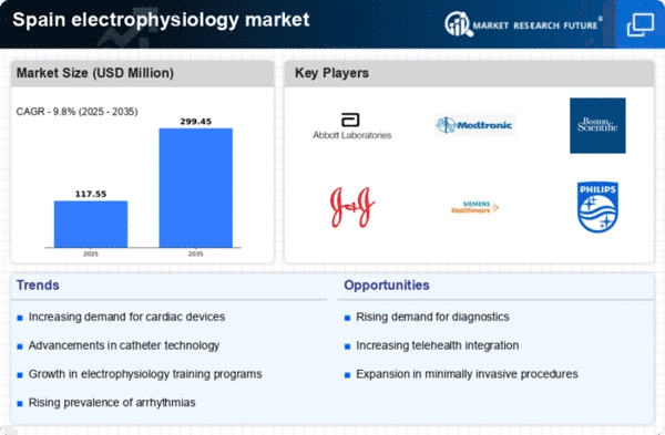 The growing preference for minimally invasive procedures is a notable driver in the electrophysiology market. Patients and healthcare providers in Spain are increasingly opting for techniques that reduce recovery time and minimize surgical risks. This trend is reflected in the rising number of catheter ablation procedures, which have seen an increase of approximately 15% annually. The shift towards these procedures is supported by advancements in technology, which enhance the efficacy and safety of electrophysiological interventions. As a result, the electrophysiology market is likely to experience substantial growth, driven by the demand for innovative solutions that align with patient preferences for less invasive treatment options.