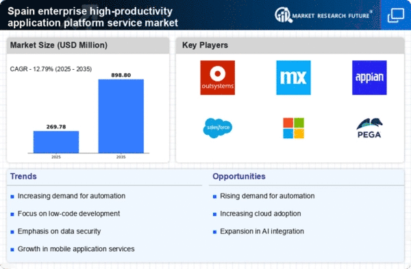 The adoption of mobile-first strategies is emerging as a key driver in the enterprise high-productivity-application-platform-service market in Spain. As mobile device usage continues to rise, businesses are increasingly prioritizing the development of mobile applications to engage customers effectively. This trend is supported by data indicating that mobile applications account for over 50% of total web traffic in Spain. Consequently, organizations are seeking high-productivity application platforms that enable them to create mobile-friendly applications quickly and efficiently. The emphasis on mobile-first development is likely to propel the enterprise high-productivity-application-platform-service market forward, as companies recognize the importance of reaching their audiences through mobile channels.