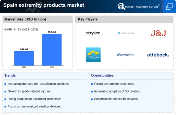 Technological innovations in product design are transforming the extremity products market, leading to enhanced functionality and user experience. Manufacturers are increasingly integrating advanced materials and smart technologies into their products, which may improve performance and comfort for users. For instance, the introduction of lightweight materials and 3D printing techniques has enabled the production of customized extremity products that cater to individual patient needs. This trend is expected to continue, with the market projected to grow at a CAGR of 6% over the next five years. As these innovations become more prevalent, healthcare providers in Spain are likely to adopt these advanced solutions, further propelling the extremity products market.