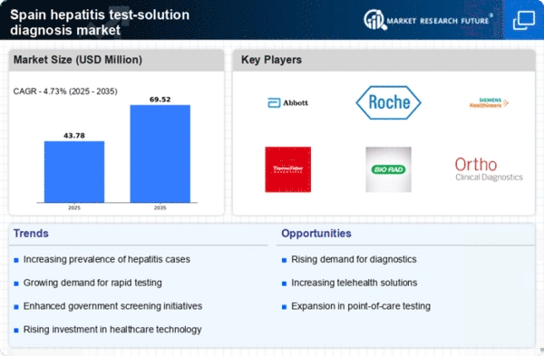Advancements in molecular diagnostics are revolutionizing the hepatitis test-solution-diagnosis market. Innovative technologies, such as PCR and next-generation sequencing, are enabling more accurate and sensitive detection of hepatitis viruses. In Spain, the adoption of these advanced diagnostic methods is increasing, as they provide rapid and reliable results, which are crucial for effective patient management. The market for molecular diagnostics is expected to expand significantly, with projections indicating a growth rate of approximately 10% annually. This trend suggests that healthcare providers are prioritizing precision medicine, which is likely to enhance the overall quality of hepatitis care. As molecular diagnostics become more accessible, they are expected to play a pivotal role in the future of hepatitis testing.