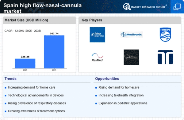 Government initiatives aimed at improving healthcare infrastructure in Spain are playing a crucial role in the high flow-nasal-cannula market. Increased funding for respiratory care programs and the establishment of guidelines promoting the use of high flow nasal cannula therapy are likely to bolster market growth. For instance, recent allocations of €50 million towards respiratory health initiatives suggest a commitment to enhancing patient care. These efforts not only facilitate access to advanced respiratory technologies but also encourage healthcare facilities to adopt high flow nasal cannula systems, thereby expanding the market. The alignment of public health policies with technological advancements is expected to create a favorable environment for market expansion.
