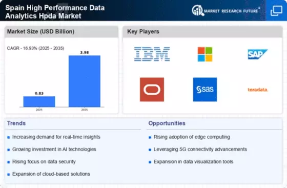 The Spain High Performance Data Analytics Hpda Market is witnessing a growing demand for real-time analytics solutions. Organizations across various sectors, including finance, healthcare, and retail, are increasingly relying on real-time data insights to enhance decision-making processes. According to recent data, the market for real-time analytics in Spain is projected to grow at a compound annual growth rate (CAGR) of approximately 15% over the next five years. This trend is driven by the need for businesses to respond swiftly to market changes and customer preferences, thereby improving operational efficiency. As a result, companies are investing in high-performance data analytics tools that can process large volumes of data in real-time, positioning themselves competitively in the market.