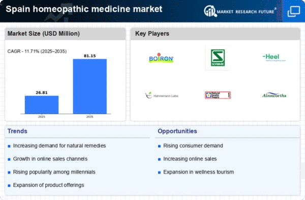 The homeopathic medicine market in Spain is significantly influenced by the rising interest in preventive healthcare. Consumers are increasingly prioritizing health maintenance and disease prevention over reactive treatments. This shift is reflected in the growing popularity of homeopathic remedies, which are often perceived as a proactive approach to health. Recent surveys indicate that approximately 60% of Spaniards are now considering alternative therapies as part of their wellness routines. This trend suggests a potential for sustained growth in the homeopathic medicine market, as more individuals seek to incorporate preventive measures into their healthcare practices.