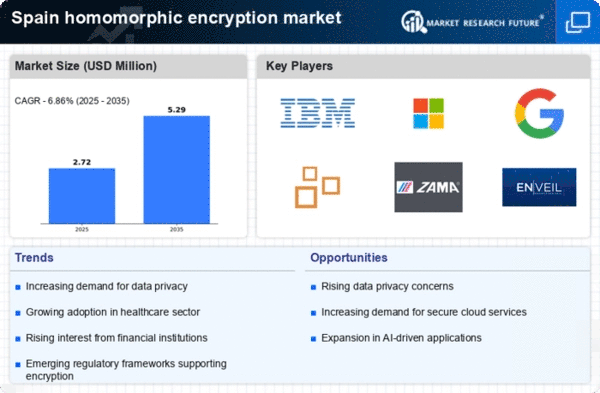 The rise in cybersecurity threats in Spain has catalyzed the demand for advanced data protection mechanisms. As organizations face increasing risks from data breaches and cyberattacks, the homomorphic encryption market appears to be a viable solution. This technology allows for computations on encrypted data without exposing sensitive information, thus enhancing security. According to recent studies, the cybersecurity market in Spain is projected to grow at a CAGR of 12% from 2025 to 2030, indicating a robust environment for homomorphic encryption solutions. Companies are likely to invest in this technology to safeguard their data assets, thereby driving growth in the homomorphic encryption market.