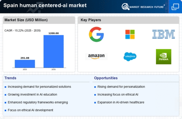 The integration of AI technologies across various sectors in Spain is significantly influencing the human centered-ai market. Industries such as healthcare, finance, and retail are increasingly adopting AI solutions to improve efficiency and enhance user experiences. For instance, the healthcare sector is leveraging AI for personalized patient care, while the retail industry utilizes AI for inventory management and customer insights. This cross-sector adoption is projected to contribute to a market growth rate of 25% over the next five years. As organizations recognize the potential of human centered-ai to streamline operations and improve service delivery, the demand for innovative AI applications is expected to rise, further propelling the market forward.