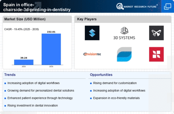 The in office-chairside-3d-printing-in-dentistry market is experiencing a notable increase in demand for customized dental solutions. Patients are increasingly seeking personalized treatments, which has led to a surge in the adoption of 3D printing technologies. In Spain, the market for dental services is projected to grow at a CAGR of approximately 8% over the next five years. This growth is driven by the ability of 3D printing to produce tailored dental implants, crowns, and aligners that meet individual patient needs. As dental professionals recognize the benefits of offering customized solutions, the in office-chairside-3d-printing-in-dentistry market is likely to expand, enhancing patient satisfaction and treatment outcomes.