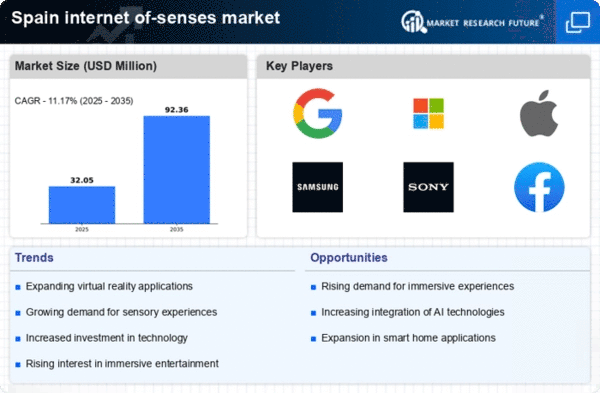 Government support and funding initiatives are playing a crucial role in the development of the internet of-senses market in Spain. Various programs aimed at fostering innovation in technology are being implemented, which include grants and subsidies for research in sensory technologies. The Spanish government has allocated approximately €200 million for technology innovation projects in the current fiscal year, which is likely to benefit the internet of-senses market. This financial backing encourages startups and established companies to explore new sensory applications, thereby stimulating market growth. As these initiatives continue, they are expected to create a more conducive environment for technological advancements and collaborations within the industry.