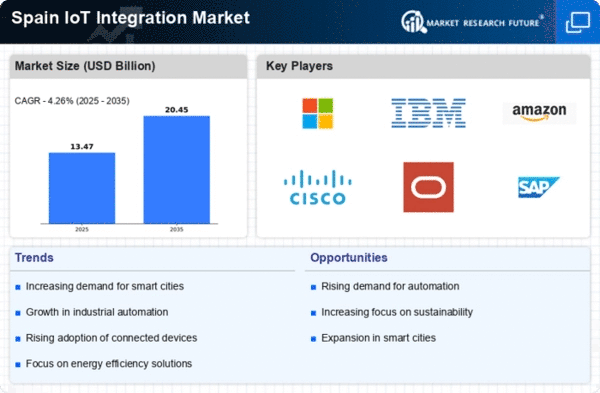 The advent of Industry 4.0 is significantly influencing the iot integration market in Spain. This paradigm shift towards smart manufacturing and interconnected systems is prompting companies to adopt IoT solutions to remain competitive. The integration of IoT technologies enables real-time monitoring, predictive maintenance, and enhanced supply chain management. Recent studies suggest that the adoption of Industry 4.0 practices could increase productivity by up to 30% in manufacturing sectors. Consequently, the iot integration market is poised for substantial growth as businesses invest in advanced technologies to optimize their operations and drive innovation.