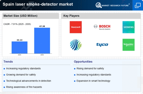 The growth of smart building technologies is emerging as a key driver for the laser smoke-detector market. As more buildings in Spain adopt smart technologies, the integration of advanced smoke detection systems becomes increasingly relevant. Laser smoke detectors, with their ability to connect to smart home systems, provide enhanced safety features and real-time monitoring capabilities. This trend is expected to propel the market forward, as consumers seek comprehensive safety solutions that align with their smart living environments. The laser smoke-detector market is projected to grow by approximately 10% annually, fueled by the increasing demand for interconnected safety systems in both residential and commercial properties. The synergy between smart technologies and fire safety solutions is likely to redefine the landscape of the market.