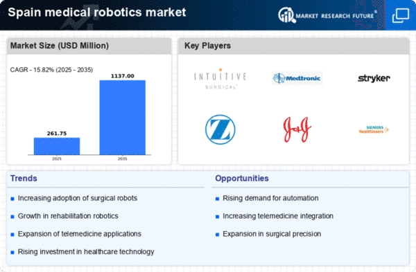 Government initiatives in Spain are playing a crucial role in the expansion of the medical robotics market. The Spanish government has recognized the potential of robotics in healthcare and is actively funding research and development projects. In 2025, public funding for medical technology is expected to reach €200 million, aimed at fostering innovation in robotic systems. These initiatives not only support the development of new technologies but also encourage collaboration between public institutions and private companies. As a result, the medical robotics market is likely to benefit from enhanced research capabilities and the introduction of cutting-edge solutions that improve patient care.