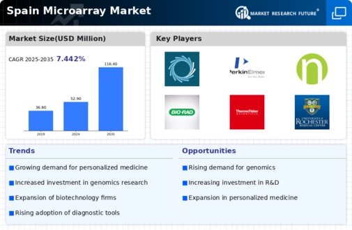 The demand for diagnostic tools is a significant driver of the Spain microarray market. As healthcare systems increasingly prioritize early diagnosis and personalized treatment, microarray technology is becoming essential for various applications, including genetic testing and disease profiling. The Spanish healthcare sector has reported a growing adoption of microarray-based diagnostics, with a projected market growth rate of 12% annually. This trend is supported by the increasing prevalence of genetic disorders and the need for tailored therapeutic approaches. Furthermore, the integration of microarray technology into routine clinical practice is likely to enhance patient outcomes, thereby reinforcing its importance in the Spain microarray market. As healthcare providers seek innovative solutions, the demand for microarray diagnostics is expected to continue its upward trajectory.