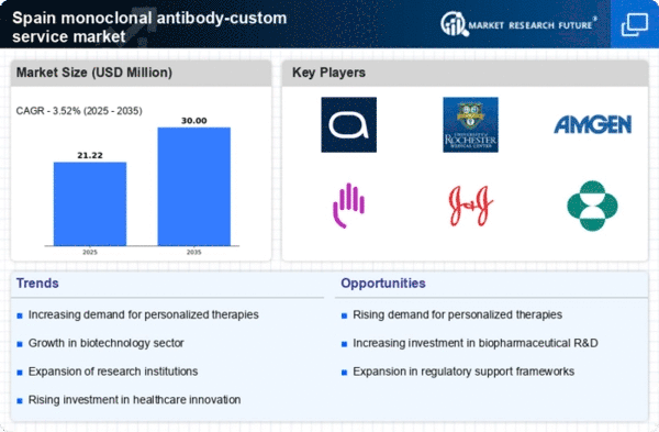 Technological advancements in diagnostic tools are significantly influencing the monoclonal antibody-custom-service market in Spain. Enhanced diagnostic capabilities enable healthcare professionals to identify diseases at earlier stages, which is crucial for effective treatment. The integration of monoclonal antibodies in diagnostic assays has shown promising results, improving the accuracy and reliability of disease detection. In 2025, the market for diagnostic services in Spain is anticipated to grow by approximately 15%, driven by the increasing adoption of advanced technologies. This trend suggests that as diagnostic methods become more sophisticated, the demand for custom monoclonal antibodies tailored for specific diagnostic applications will likely increase. Thus, the interplay between diagnostics and therapeutic development is expected to create new opportunities within the monoclonal antibody-custom-service market.