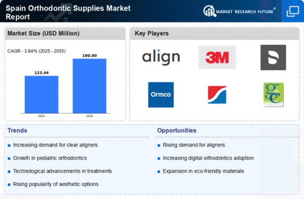 The orthodontic supplies market benefits from the expansion of orthodontic practices across Spain. With an increasing number of practitioners entering the field, there is a heightened demand for various orthodontic supplies, including brackets, wires, and aligners. This expansion is partly attributed to the rising awareness of oral health and the importance of orthodontic treatment. According to recent data, the number of orthodontic specialists in Spain has increased by 15% over the past five years. This growth not only enhances competition but also drives innovation in the orthodontic supplies market, as practitioners seek to differentiate their services through advanced products.