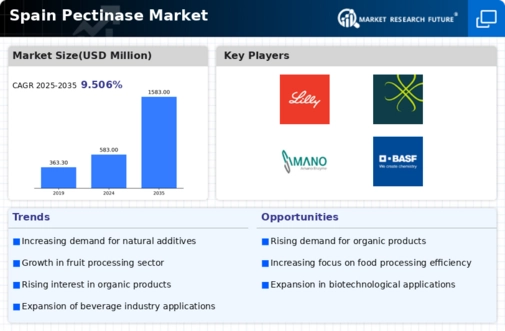 The Spain pectinase market is supported by favorable regulatory frameworks that promote the use of natural ingredients in food production. The European Union has established regulations that encourage the use of enzymes like pectinase, which are derived from natural sources. This regulatory environment is conducive to the growth of the Spain pectinase market, as it aligns with the increasing consumer demand for clean label products. Furthermore, the Spanish government is actively supporting initiatives that promote sustainable agricultural practices, which may further enhance the market for natural enzymes. This regulatory support could lead to increased adoption of pectinase in various food applications.