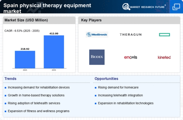 the physical therapy equipment market in Spain experiences a notable increase in demand for rehabilitation services. This trend is driven by a growing awareness of the importance of physical therapy in recovery and rehabilitation processes. As the population becomes more health-conscious, the need for effective rehabilitation solutions rises. According to recent data, the market is projected to grow at a CAGR of approximately 6.5% over the next five years. This growth is indicative of a broader shift towards preventive healthcare, where individuals seek physical therapy not only for recovery but also for maintaining overall wellness. Consequently, the demand for advanced physical therapy equipment is likely to surge, as healthcare providers aim to offer comprehensive rehabilitation services that cater to diverse patient needs.