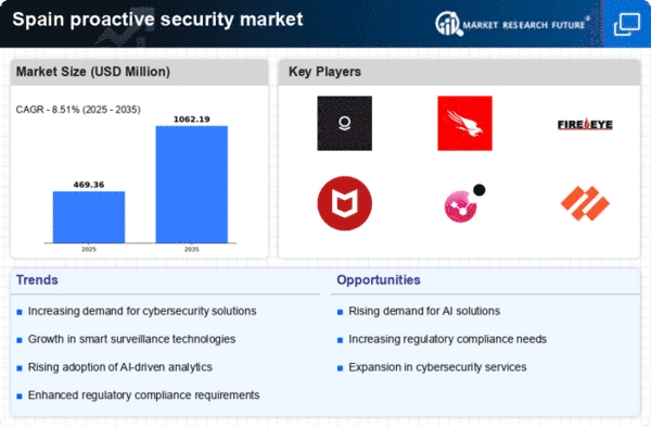 Technological advancements are playing a crucial role in shaping the proactive security market in Spain. Innovations such as artificial intelligence (AI), machine learning, and advanced analytics are enabling organizations to enhance their security posture. These technologies allow for real-time threat detection and response, which is essential in a landscape where threats are constantly evolving. In 2025, it is projected that the market for AI-driven security solutions could reach €5 billion in Spain, reflecting the growing reliance on technology to address security challenges. Furthermore, the integration of Internet of Things (IoT) devices is creating new vulnerabilities, necessitating proactive security measures to protect these assets. As organizations increasingly adopt these advanced technologies, The proactive security market will expand, driven by the demand for innovative solutions that can effectively counter emerging threats.