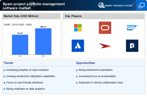 The project portfolio-management-software market in Spain is experiencing a notable shift towards agile methodologies. Organizations are increasingly adopting agile project management practices to enhance flexibility and responsiveness to market changes. This trend is driven by the need for faster project delivery and improved collaboration among teams. According to recent data, approximately 60% of Spanish companies have reported a transition to agile frameworks, indicating a significant demand for software solutions that support these methodologies. As a result, project portfolio-management-software providers are focusing on developing features that facilitate agile planning, tracking, and reporting, thereby enhancing their offerings in the competitive landscape.