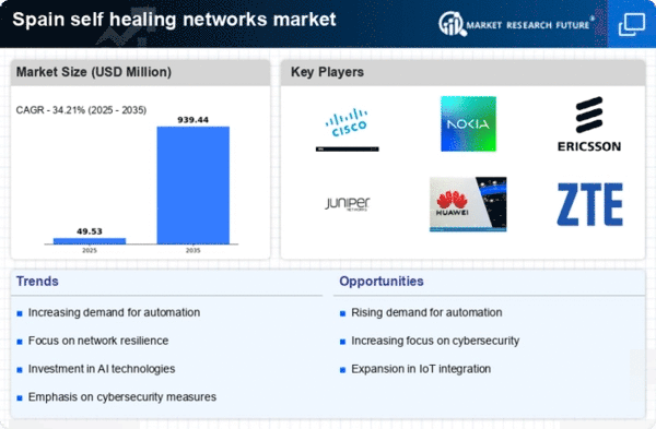 In Spain, the self healing-networks market is being shaped by stringent regulatory compliance requirements and a heightened focus on data protection. Organizations are increasingly mandated to adhere to regulations such as the General Data Protection Regulation (GDPR), which necessitates robust data management practices. This regulatory landscape compels businesses to invest in self healing technologies that not only enhance network performance but also ensure compliance with data protection standards. The self healing-networks market is thus likely to experience growth as companies seek solutions that can automatically address vulnerabilities and maintain compliance. As a result, the demand for self healing networks that integrate compliance features is expected to rise, reflecting the critical intersection of technology and regulatory obligations.