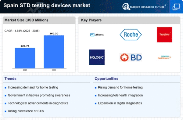 The std testing-devices market in Spain is experiencing a notable shift towards home testing solutions. This trend is driven by the increasing preference for privacy and convenience among consumers. A survey indicates that approximately 60% of individuals prefer testing at home rather than visiting a clinic. This demand is likely to propel the market forward, as manufacturers are investing in developing user-friendly and accurate home testing kits. The rise of e-commerce platforms further facilitates access to these devices, allowing consumers to purchase them discreetly. As a result, The STD testing devices market is expected to expand significantly, with projections suggesting a growth rate of around 15% annually over the next five years.. This shift towards home testing solutions reflects a broader trend in healthcare, where patients seek more control over their health management.