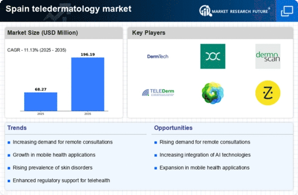 The teledermatology market is benefiting from a growing emphasis on preventive healthcare in Spain. As awareness of skin health increases, more individuals are seeking early intervention for dermatological issues. This proactive approach is likely to drive the demand for teledermatology services, as patients can easily consult with specialists to address concerns before they escalate. Data indicates that preventive healthcare initiatives have led to a 25% increase in dermatological consultations in recent years. Consequently, the teledermatology market is positioned to capitalize on this trend, offering timely and accessible care that aligns with the preventive health paradigm.