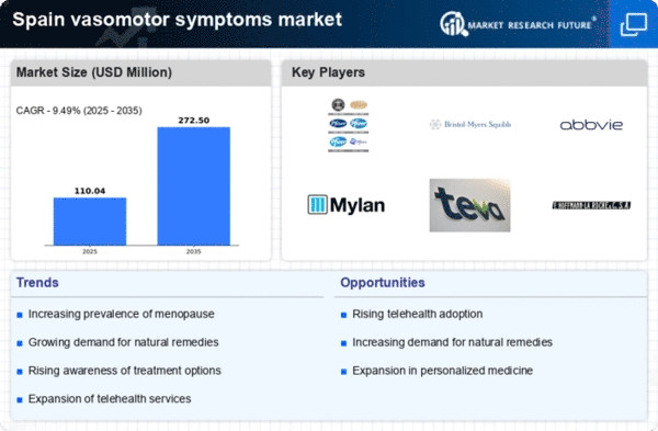 Regulatory support for innovative therapies in Spain is emerging as a key driver for the vasomotor symptoms market. The Spanish government and health authorities are increasingly prioritizing the approval and reimbursement of new treatment options, which may facilitate quicker access for patients. This supportive regulatory environment is likely to encourage pharmaceutical companies to invest in research and development, leading to the introduction of novel therapies. In 2025, it is anticipated that the market will benefit from the approval of at least five new treatments specifically targeting vasomotor symptoms, thereby enhancing competition and driving growth within the vasomotor symptoms market.