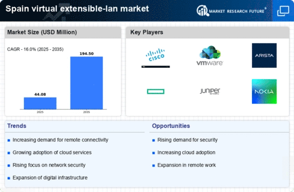 The increasing reliance on high-speed internet connectivity in Spain is driving the virtual extensible-lan market. Businesses and consumers alike are demanding faster and more reliable network solutions to support their digital activities. As of 2025, the demand for high-speed internet is projected to grow by approximately 15%, necessitating advanced networking solutions. This trend is particularly evident in urban areas where digital transformation initiatives are underway. The virtual extensible-lan market is poised to benefit from this demand, as it offers scalable and efficient solutions that can accommodate the growing bandwidth requirements of various applications, including video conferencing and cloud computing.
