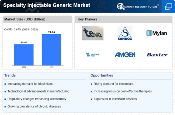The rising incidence of chronic diseases such as diabetes, cancer, and autoimmune disorders is a primary driver for the Specialty Injectable Generic Market. As these conditions require long-term treatment, the demand for injectable medications is expected to surge. According to recent data, chronic diseases account for approximately 70% of all deaths, highlighting the urgent need for effective therapies. Specialty injectables, often used in the management of these diseases, are becoming increasingly essential. The Specialty Injectable Generic Market is likely to benefit from this trend, as healthcare providers seek cost-effective alternatives to branded injectables, which can be prohibitively expensive. This shift towards generics not only alleviates financial burdens on patients but also enhances accessibility to necessary treatments, thereby fostering market growth.