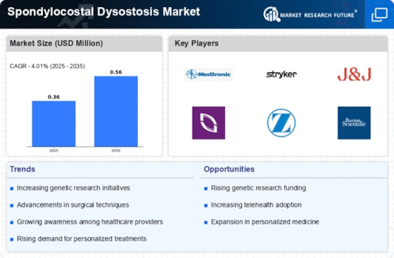 The Spondylocostal Dysostosis Market is significantly influenced by advancements in diagnostic technologies. Innovations such as next-generation sequencing and advanced imaging techniques have improved the accuracy and speed of diagnosis. These technologies enable healthcare professionals to identify spondylocostal dysostosis more effectively, leading to earlier intervention and better patient outcomes. The market for genetic testing is projected to expand, with estimates suggesting a growth rate of around 10% annually. As diagnostic capabilities improve, the demand for targeted therapies and specialized care is likely to increase, further propelling the Spondylocostal Dysostosis Market.