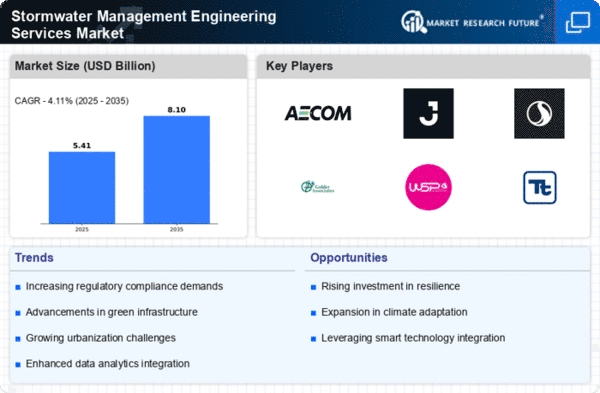 The Middle East and Africa (MEA) region, with a market size of 0.1 billion, presents untapped opportunities in the Stormwater Management Engineering Services Market. Rapid urbanization and climate change are intensifying the need for effective stormwater management solutions. Governments are beginning to recognize the importance of sustainable water management practices, leading to increased investments in infrastructure and regulatory frameworks. Countries like South Africa and the UAE are taking steps to improve their stormwater management systems, although challenges remain due to limited resources and regulatory support. The competitive landscape is still developing, with local firms and international players exploring opportunities. As awareness grows, the MEA region is expected to gradually enhance its stormwater management capabilities, paving the way for future growth.