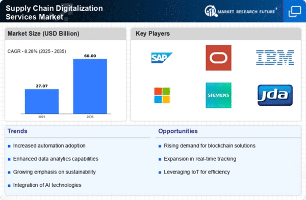 The Middle East and Africa region is at the nascent stage of the Supply Chain Digitalization Services Market, with a market size of $0.5 billion. However, the potential for growth is significant, driven by increasing investments in technology and infrastructure. Governments are recognizing the importance of digital transformation in enhancing supply chain efficiency, which is catalyzing market development across the region.
