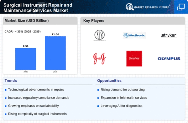 The Middle East and Africa region is gradually emerging in the Surgical Instrument Repair and Maintenance Services Market, with a projected size of $0.76B by 2025. The growth is driven by increasing healthcare investments, a rising number of surgical procedures, and a focus on improving healthcare quality. Regulatory bodies are beginning to implement standards that enhance the safety and effectiveness of surgical instruments, which is expected to further stimulate market demand.