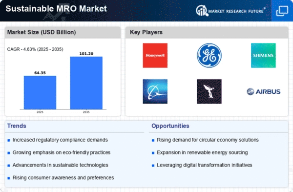 Many organizations are now prioritizing corporate sustainability initiatives, which significantly influence the Sustainable MRO Market. Companies are recognizing that sustainable practices not only contribute to environmental preservation but also enhance their brand reputation and operational efficiency. As part of these initiatives, businesses are increasingly investing in sustainable MRO solutions, such as eco-friendly materials and energy-efficient processes. This trend is evident in various sectors, where organizations are setting ambitious sustainability targets and integrating them into their MRO strategies. The commitment to sustainability is likely to drive growth in the Sustainable MRO Market, as companies seek to align their operations with broader environmental goals.
