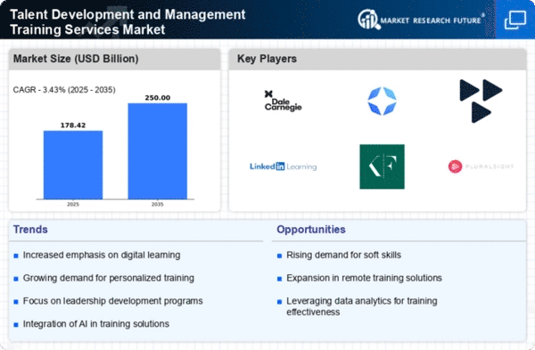 The competitive landscape in North America is characterized by the presence of major players such as Dale Carnegie Training, FranklinCovey, and Skillsoft. These organizations are leveraging innovative technologies and online platforms to deliver training solutions. The U.S. remains the largest market, with Canada also showing significant growth potential. The focus on personalized learning experiences and data-driven training solutions is shaping the future of talent development in this region.