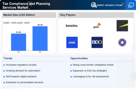 The Middle East and Africa region, with a market size of 1.0, presents untapped opportunities in the Tax Compliance and Planning Services market. The growth is driven by increasing economic diversification efforts and the implementation of VAT in several countries, which has heightened the need for compliance services. Governments are focusing on enhancing tax systems to improve revenue collection, creating a favorable environment for tax service providers.