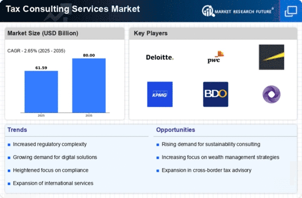 The Middle East and Africa (MEA) region, with a market size of 3.0%, is an emerging market for Tax Consulting Services. The growth is primarily driven by increasing economic diversification efforts and the need for compliance with international tax standards. Governments are actively reforming tax policies to attract foreign investment, which is creating opportunities for consulting firms. The demand for advisory services is expected to rise as businesses navigate these changes and seek to optimize their tax strategies.