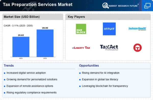 The Middle East and Africa region, with a market size of $2.0 billion in 2025, presents significant growth potential in tax preparation services. The demand is driven by increasing economic activities, a growing expatriate population, and the need for compliance with local tax regulations. Governments are also enhancing tax frameworks to improve revenue collection, which is expected to boost the market.