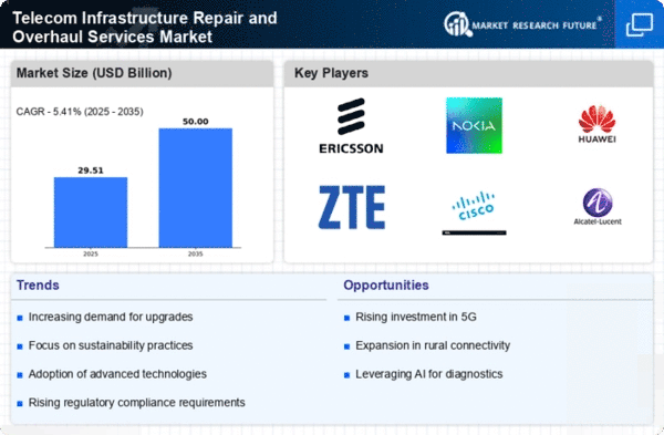 Europe's Telecom Infrastructure Repair and Overhaul Services Market is valued at $8.4 billion, driven by increasing digitalization and the rollout of 5G networks. The region is witnessing a surge in demand for reliable telecom services, supported by government initiatives aimed at enhancing connectivity. Regulatory frameworks are evolving to facilitate investments in infrastructure, which is crucial for sustaining growth in this sector.