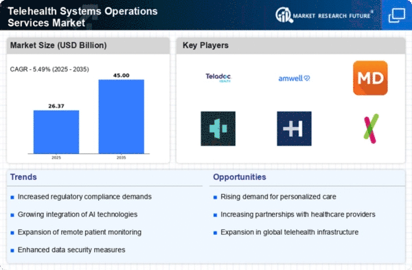 North America continues to lead the Telehealth Systems Operations Services Market, holding a significant market share of 12.5 in 2024. The growth is driven by increasing demand for remote healthcare solutions, advancements in technology, and supportive regulatory frameworks. The COVID-19 pandemic has accelerated the adoption of telehealth, with more patients seeking virtual consultations, thus enhancing accessibility and convenience. The competitive landscape is robust, featuring key players such as Teladoc Health, Amwell, and MDLIVE. The U.S. remains the largest market, supported by a high penetration of internet services and a tech-savvy population. The presence of established companies and continuous innovation in service delivery models further solidify North America's position as a leader in telehealth services.