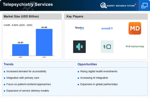 The Telepsychiatry Services Industry benefits from evolving regulatory frameworks that support the integration of telehealth into traditional healthcare systems. Recent policy changes have facilitated reimbursement for telepsychiatry services, making them more financially viable for providers and patients alike. For instance, many insurance companies now cover telepsychiatry sessions, which encourages more practitioners to offer these services. Additionally, government initiatives aimed at improving mental health access have led to the establishment of guidelines that promote the use of telehealth technologies. This regulatory support not only enhances the credibility of telepsychiatry but also fosters an environment conducive to its growth. As policies continue to evolve, the Telepsychiatry Services Industry is likely to see increased adoption and integration into mainstream healthcare.