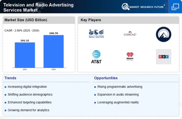 The Middle East and Africa region, with a market size of 6.5 in 2025, is an emerging frontier for Television and Radio Advertising Services. The growth is fueled by increasing media consumption, urbanization, and investments in digital infrastructure. Regulatory bodies are beginning to adapt to the changing landscape, promoting transparency and competition in advertising practices, which is essential for market growth.