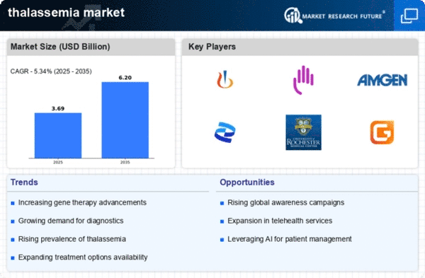 Europe's thalassemia market is on the rise, with a market size of 1.0B in 2025. The region is witnessing increased investment in healthcare and a growing emphasis on rare diseases, which is driving demand for thalassemia treatments. Regulatory frameworks are evolving to support faster access to therapies, enhancing patient outcomes. The collaboration between public health initiatives and private sector innovation is a significant growth driver in this market. Leading countries such as Germany, France, and the UK are at the forefront of this market, with a strong presence of key players like Roche and GSK. The competitive landscape is marked by a mix of established pharmaceutical companies and emerging biotech firms focusing on innovative therapies. The European Medicines Agency (EMA) is actively working to streamline the approval process for new treatments, fostering a conducive environment for market growth.