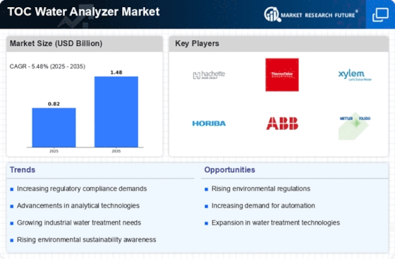 The TOC Water Analyzer Market is experiencing a surge in demand due to stringent regulatory compliance requirements across various sectors. Industries such as pharmaceuticals, food and beverage, and wastewater treatment are mandated to adhere to specific quality standards, which necessitate the use of TOC analyzers. These instruments ensure that water quality meets regulatory benchmarks, thereby safeguarding public health and the environment. The market is projected to grow as more companies invest in advanced TOC analyzers to maintain compliance. In 2023, the market was valued at approximately USD 300 million, with expectations to reach USD 450 million by 2028, reflecting a compound annual growth rate of around 8%.