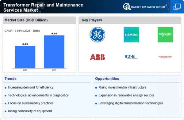 The Middle East and Africa (MEA) region presents emerging opportunities in the Transformer Repair and Maintenance Services Market, with a market size of 0.4 in 2024. The growth in this region is driven by increasing investments in energy infrastructure and a growing demand for reliable electricity supply. Governments are focusing on enhancing energy efficiency and sustainability, which is creating a favorable environment for transformer services. Regulatory initiatives are being introduced to support infrastructure development and maintenance standards. Leading countries in the MEA region include South Africa and the UAE, where key players are beginning to establish a presence. Companies like ABB and Alstom are exploring opportunities to expand their service offerings. The competitive landscape is still developing, with a mix of local and international firms entering the market. As the region continues to invest in energy infrastructure, the demand for transformer repair and maintenance services is expected to grow significantly.