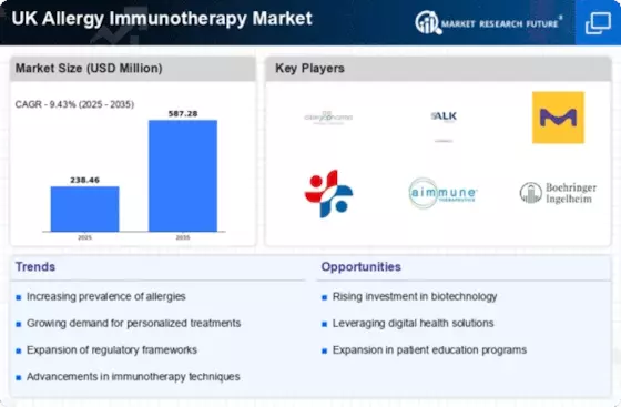 A supportive regulatory environment is a key driver for the UK Allergy Immunotherapy Market. The UK government has established frameworks that facilitate the approval and commercialization of new immunotherapy products. Regulatory bodies, such as the Medicines and Healthcare products Regulatory Agency (MHRA), are actively working to streamline the approval process for allergy treatments. This proactive approach encourages pharmaceutical companies to invest in the development of new therapies, knowing that there is a clear pathway to market. Furthermore, the UK has implemented guidelines that promote the safe and effective use of immunotherapy, which enhances patient confidence in these treatments. As a result, the UK Allergy Immunotherapy Market is likely to benefit from an influx of innovative products and increased patient access to effective therapies.