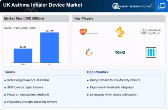 Technological advancements are reshaping the UK Asthma Inhaler Device Market. Innovations such as smart inhalers, which provide real-time data on medication usage and adherence, are gaining traction among patients and healthcare providers. These devices not only enhance patient engagement but also facilitate better management of asthma symptoms. The UK government has been supportive of such innovations, recognizing their potential to improve health outcomes. As a result, the market is witnessing a shift towards more sophisticated inhaler devices that integrate technology, thereby attracting investment and fostering competition among manufacturers.