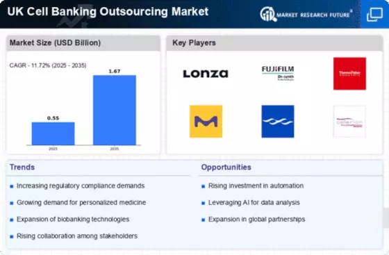 Technological advancements are playing a pivotal role in shaping the UK Cell Banking Outsourcing Market. Innovations in cryopreservation techniques and automated cell processing are enhancing the efficiency and reliability of cell storage solutions. For example, the introduction of advanced biorepositories equipped with state-of-the-art monitoring systems has improved the viability of stored cells. This technological evolution is encouraging biopharmaceutical companies to outsource their cell banking needs to specialized providers who can offer cutting-edge solutions. As a result, the UK Cell Banking Outsourcing Market is likely to witness increased investment in technology-driven services, enabling companies to maintain high standards of quality and operational efficiency.